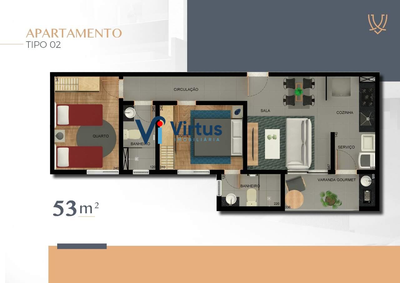 Este apartamento em construção possui uma área total de 53,27m² de um edifício moderno com 12 andares e um total de 60 unidades residenciais.