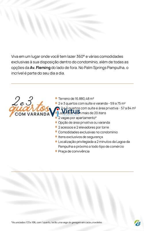 Natureza, entretenimento, serviços, cultura. Viva em um lugar onde você tem lazer 360° e várias comodidades exclusivas à sua disposição dentro do condomínio, além de todas as opções da Av. Fleming do lado de fora. No Palm Springs Pampulha, o incrível é parte do seu dia a dia.