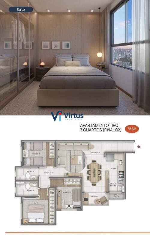 08 apartamentos 3 quartos com área privativa - 84 m²