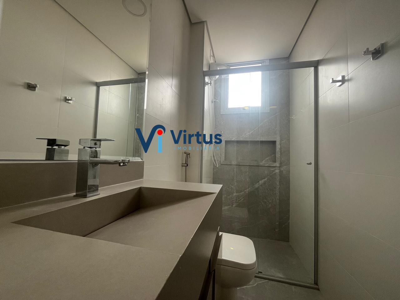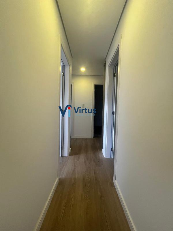São 4 quartos, sendo 1 suíte, 1 banheiro social e 1 lavabo na sala, pisos em porcelanato e laminado, armários em 3 dos 4 quartos, banheiros e cozinha, além de veneziana nas janelas dos quartos, armário de rouparia, box blindex e espelhos nos banheiros e 2 vagas de garagem, em linha e cobertas.