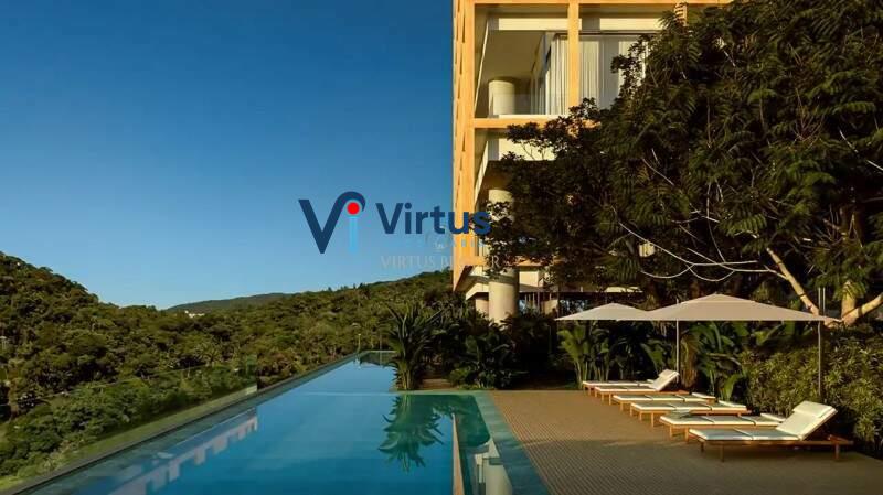 30 pavimentos em uma forma escultural marcada pela beleza de materiais naturais, mesclam-se, em harmonioso di logo, com a paisagem arborizada do Vale do Sereno.