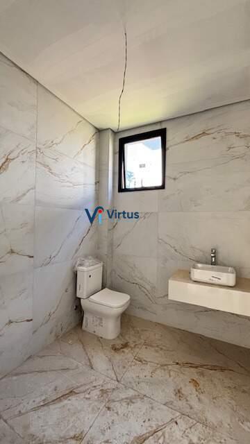 Imóvel com 5 quartos, sendo 3 suítes, incluindo uma suíte master com closet, banheira de hidromassagem e pia com cuba dupla. 2 suítes com varanda e 1 com closet.