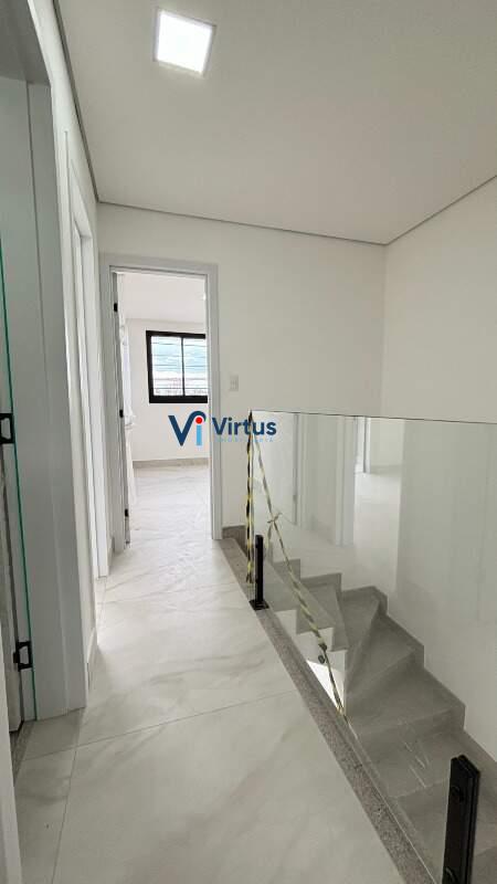 No segundo pavimento estão os três dormitórios, sendo uma suíte que dialoga perfeitamente com o conceito de refúgio particular. A suíte oferece privacidade e conforto, enquanto os outros dois quartos recebem iluminação natural abundante, ideal para acomodar crianças, hóspedes ou montar seu home office. Com três banheiros bem distribuídos – suíte, social e lavabo – e duas vagas de garagem individuais, esta casa geminada atende com excelência às demandas de uma família moderna ou de quem busca espaço para receber amigos e desfrutar de momentos inesquecíveis.